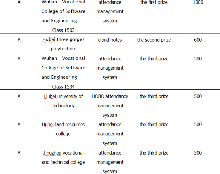 The graph shows that the students of Wuhan vocational college of software and engineering receive the first prize of Group A as freshman winners.