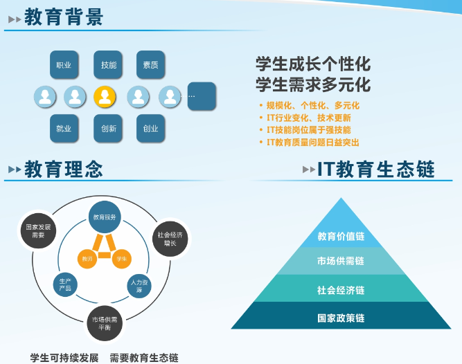 為改善這種現(xiàn)狀,非常需要學(xué)校與企業(yè)共同教育的模式,在聯(lián)合教學(xué)上,厚溥做得非常好。與接觸到的其他培訓(xùn)機構(gòu)相比,厚溥團隊對于教育的領(lǐng)悟更深入,本質(zhì)領(lǐng)會更到位。厚溥資源豐富,但更重要的是內(nèi)容、方法、管理三個方面,學(xué)校可以通過購買優(yōu)質(zhì)服務(wù)來提升自己辦學(xué)水平。