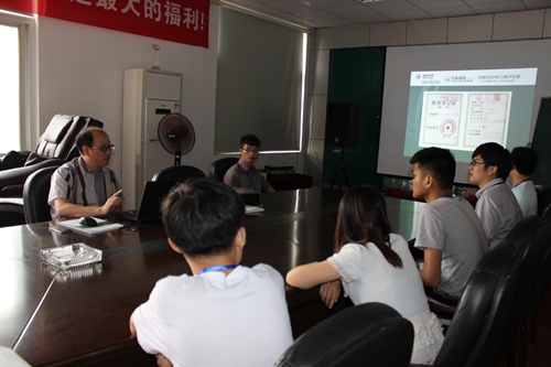 木森電氣總經理李漢明給項目組的學生介紹公司概況