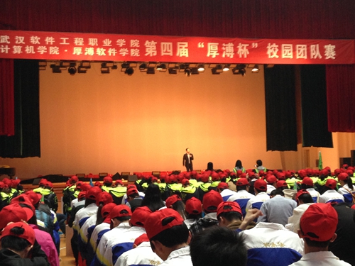校學工處副處長張水新宣布:武漢軟件工程職業學院計算機學院、厚溥軟件學院第四屆“厚溥杯”校園團隊賽正式開始。
