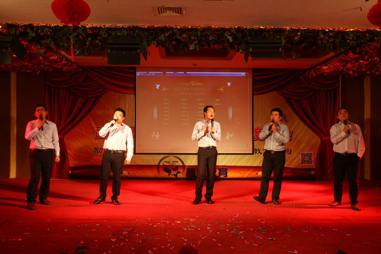 亮點(diǎn)二:參加本屆年會的人數(shù)冠絕歷屆。武漢厚溥企業(yè)麾下的厚溥教育科技有限公司、景寧人力資源有限公司、各職能部門加上各校區(qū)同仁,到會人數(shù)總計(jì)近200人。大家親切交流,笑臉相送,互送祝福。在其后的全員聚餐上,公司董事長陳相陽、執(zhí)行董事吳簡貞、總經(jīng)理胡俊和全體員工舉杯共飲,期待2014新年愿景。